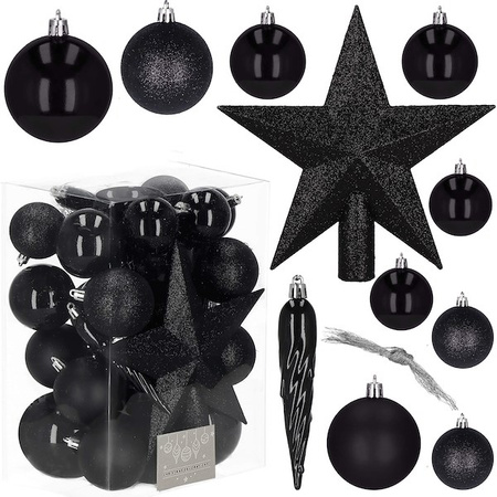 Weihnachtsbaumkugel-Set Kunststoff 33-teilig verschiedene Größen schwarz