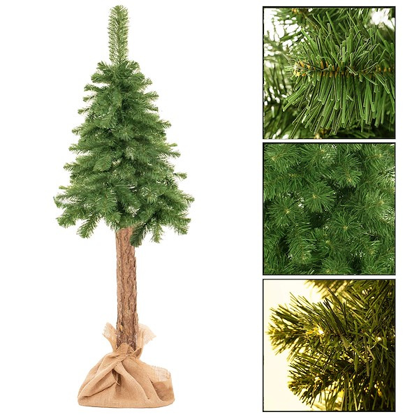 Arbre de Noël artificiel avec tronc réel de 140 cm incl. support et toile de jute